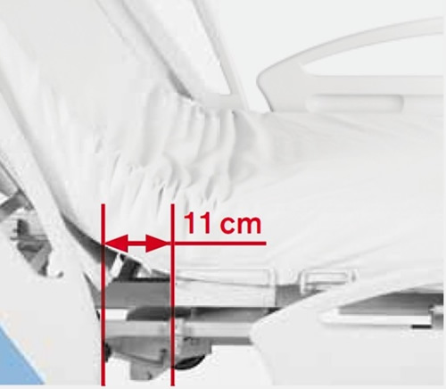 Авторегрессия ложа кровати позволяет расширить пространство в тазовой зоне на 11 см, что способствует предотвращению образования пролежней и повышает комфорт пациента.