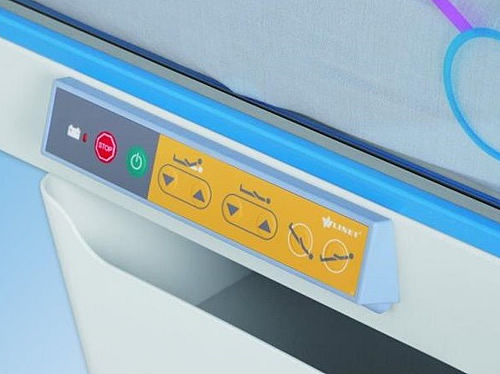 Регулировка кровати полностью электрическая. Элементы управления позволяют регулировать высоту ложа, наклон секций и положение Тренделенбург/анти-Тренделенбург. Кнопка активации функций защищает от случайных и нежелательных нажатий и регулировок.